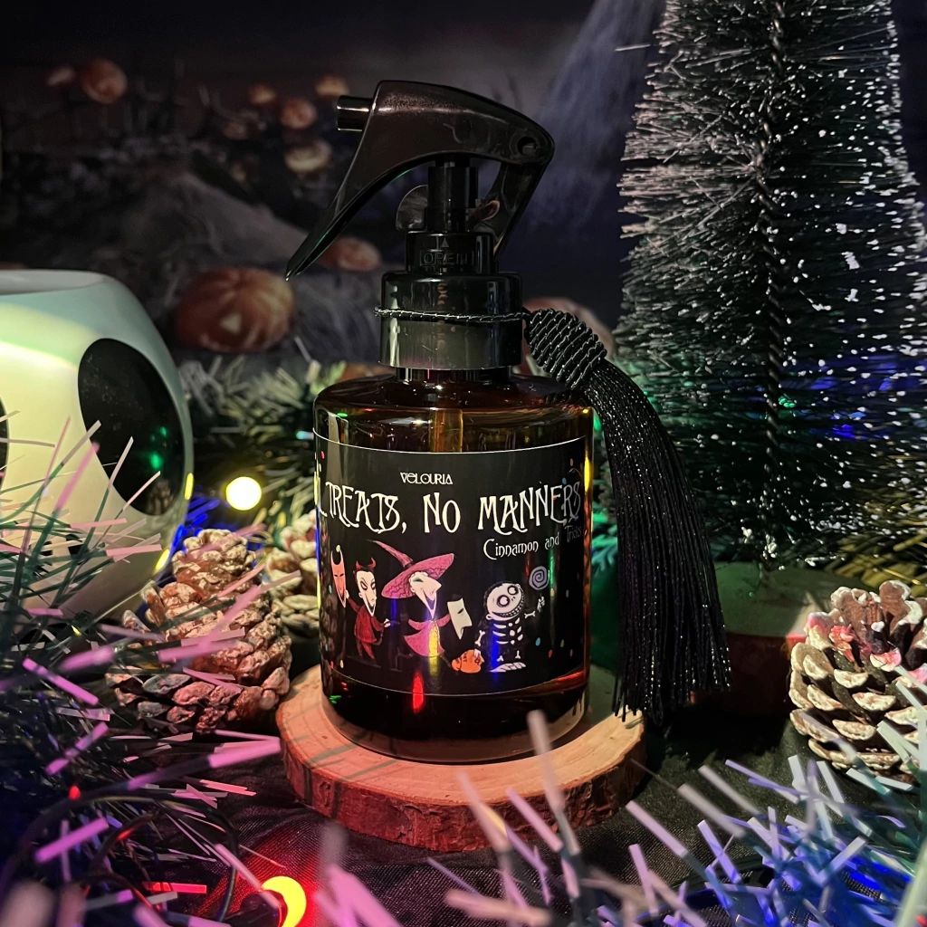 Inspirado no trio mais travesso de Nightmare Before Christmas, o home spray Lock, Shock & Barrel traz uma fragrância ousada e divertida — uma explosão de especiarias adocicadas que transformam qualquer ambiente em uma poção de travessuras perfumadas.
