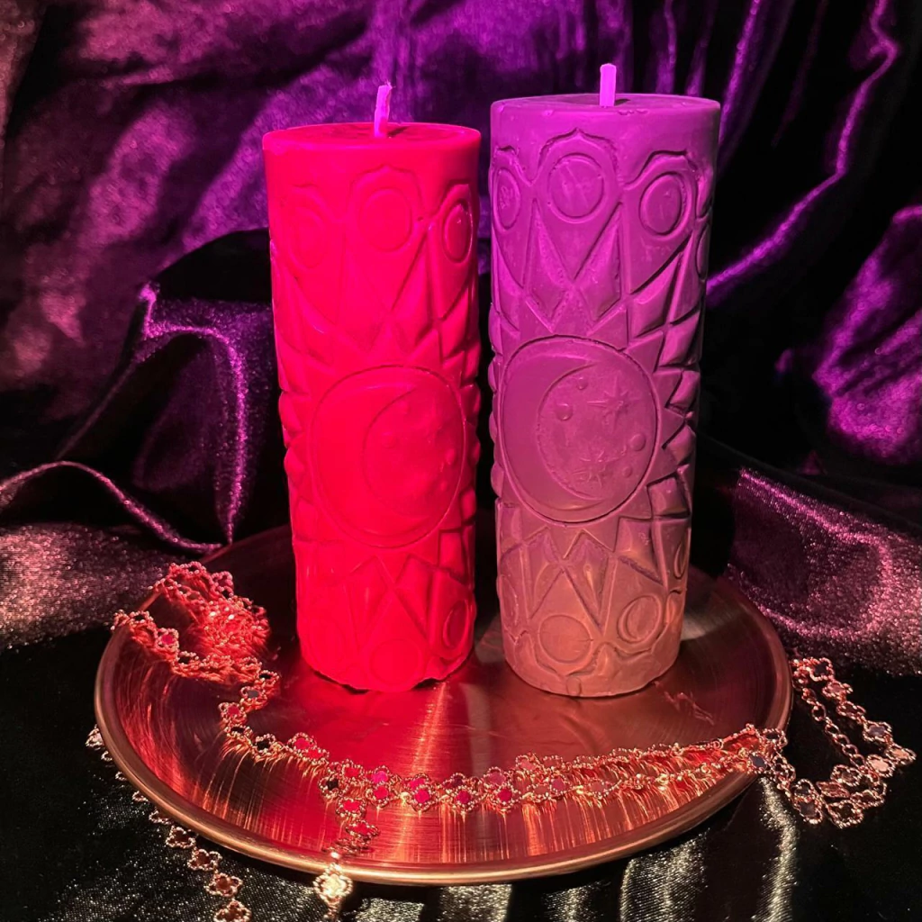 Lunar Sanctum é uma vela pilar talhada com a imagem da lua — Criada para rituais, meditações e momentos de introspecção profunda, ela transforma qualquer espaço em um altar secreto.